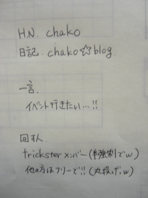 〇このバトンはもろに手書きでその写真を載せるという、なんとも汚い字を書けないバトンです。